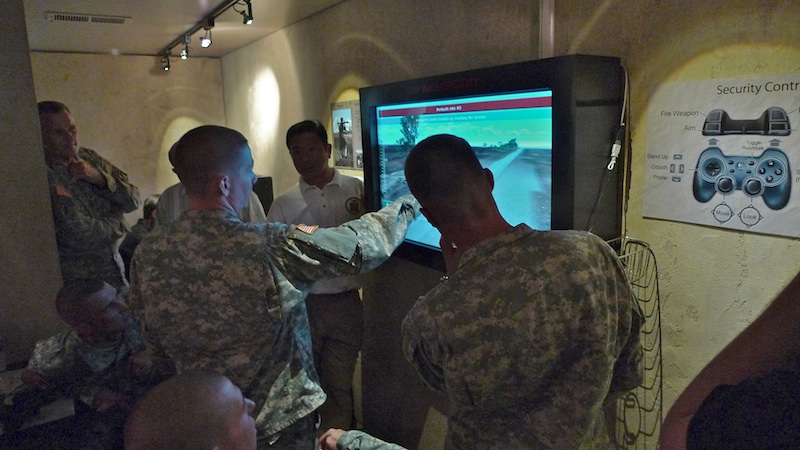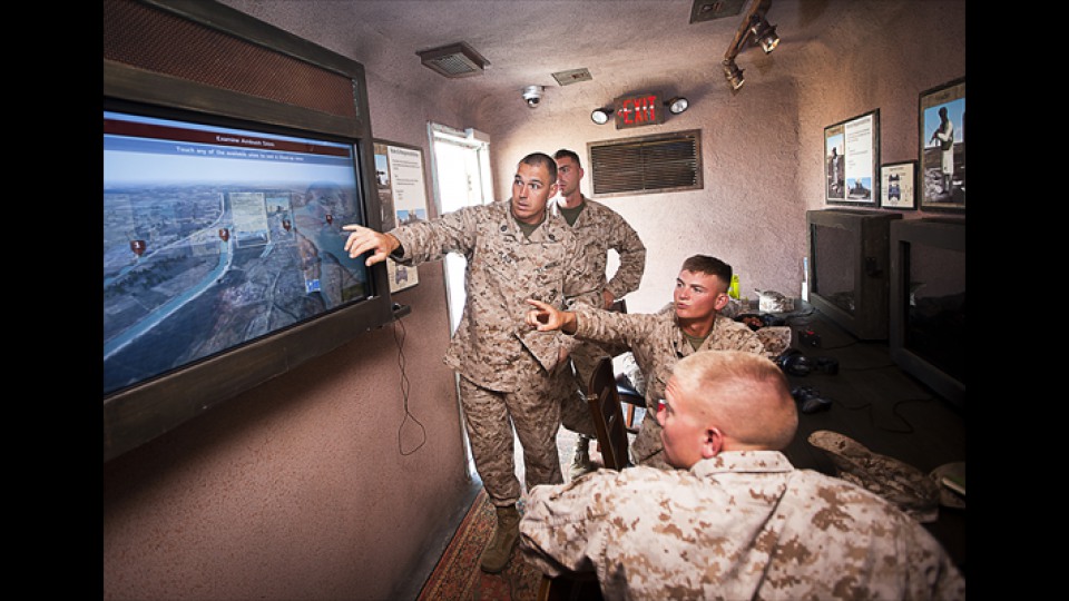 The Mobile Counter-IED Trainer (MCIT) trains US Army and Marine Corps personnel to recognize and defeat improvised explosive devices (IEDs) in geo-specific first-person environments. Deployed in a series of modified 40′ shipping containers, MCIT takes participants through the planning cycle of US and insurgent forces and then engages them in an immersive blue vs. red exercise.